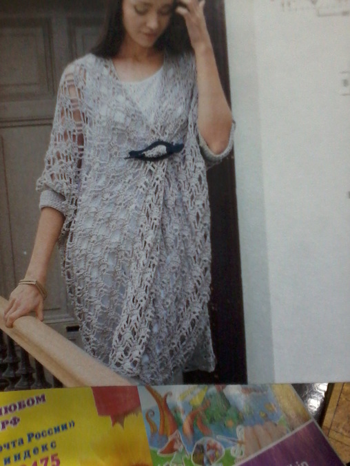 Вязать такое я точно не соберусь, не мой стиль))) А Вы смогли сами найти описание в инете, молодец! Журнал то совсем новенький)) И вяжется он не буквой , а прямым полотном....странно...видимо за счет свободного кроя даются рукава