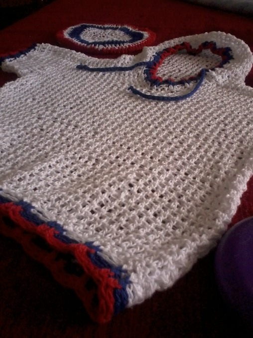 Описания нет:-)вязала просто прикладывала к футболке:-)и у меня сынишка:-):-):-)схема проста вязала толстым крючком тонкие нитки,и потому вышла воздушность:-):-):-)