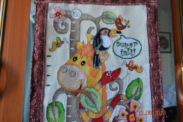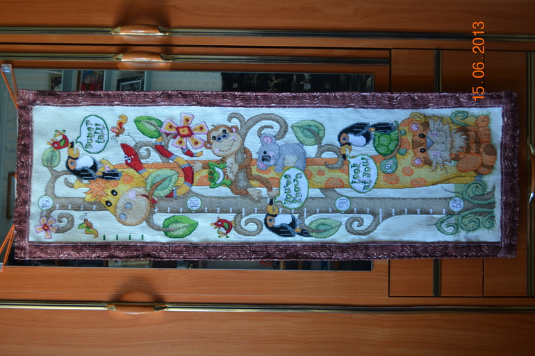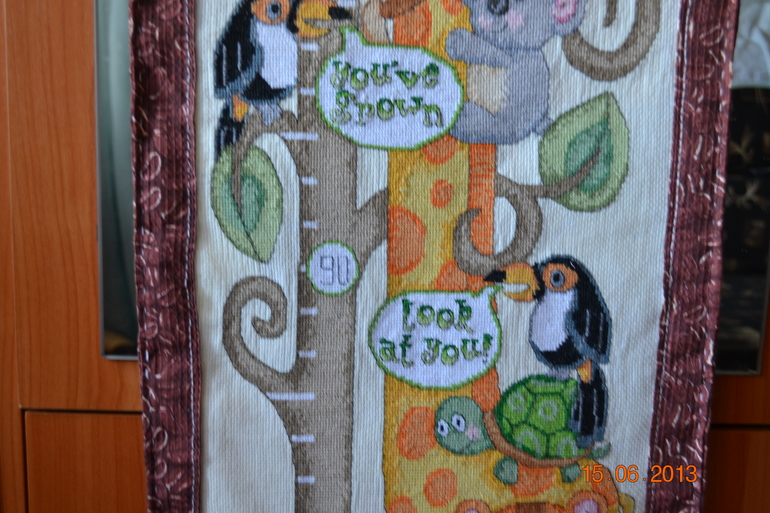 давненько не заходила на беби блог,а тут оказывается все поменялось,что я сразу и не разобралась! так вот за 3 месяца,ну или точнее если не считать перерывы то за 2 месяца,родился у меня такой вот веселый ростомер для сыночка!оформляла в ручную тоже,т.к. машинки швейной нет!результатом очень довольна,да и сыну очень понравился он!