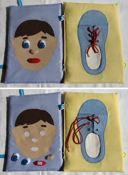 2 и 3 странички. Изучаем части лица и их расположение. Шнуровка.