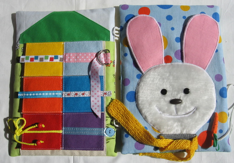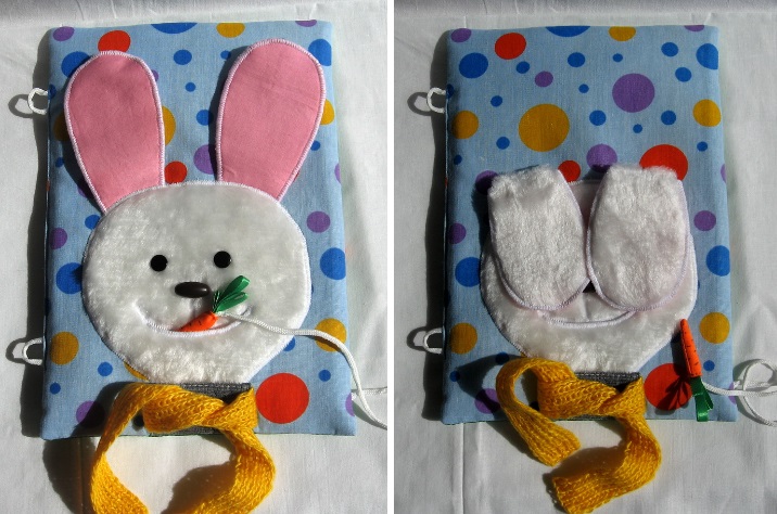 - белый кролик, которого можно кормить морковкой, играть с ним в игру "ку-ку" и завязывать-развязывать шарфик на кроличьей шейке.