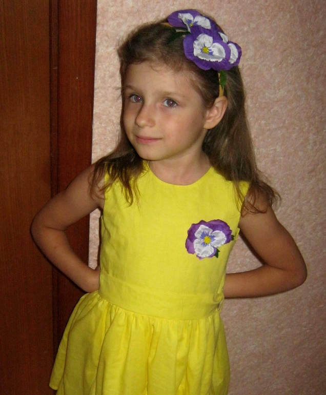 А в процессе еще родилась идея разбавить яркий желтый цвет тоже ярким, но каким-то контрастным... так появилась еще вот эта пара аксессуаров - ободок и брошка... но это уже совсем другая история)))