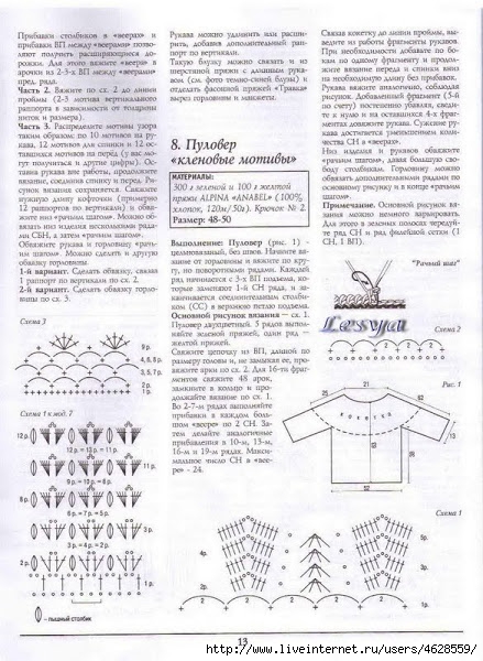 Думаю, что возникнут вопросы, как переходить на рукава, я сделала так: у меня кокетка получилась на 4 раппорта в высоту и в 4 раппорте на 3 ряду я перешла на торс (рукава оставила). А когда начала рукав подмышкой сделала 3 ст с 3мя накидами с 1 вершиной в обозначенные красным петли ( если так не сделать, будет большая дыра).