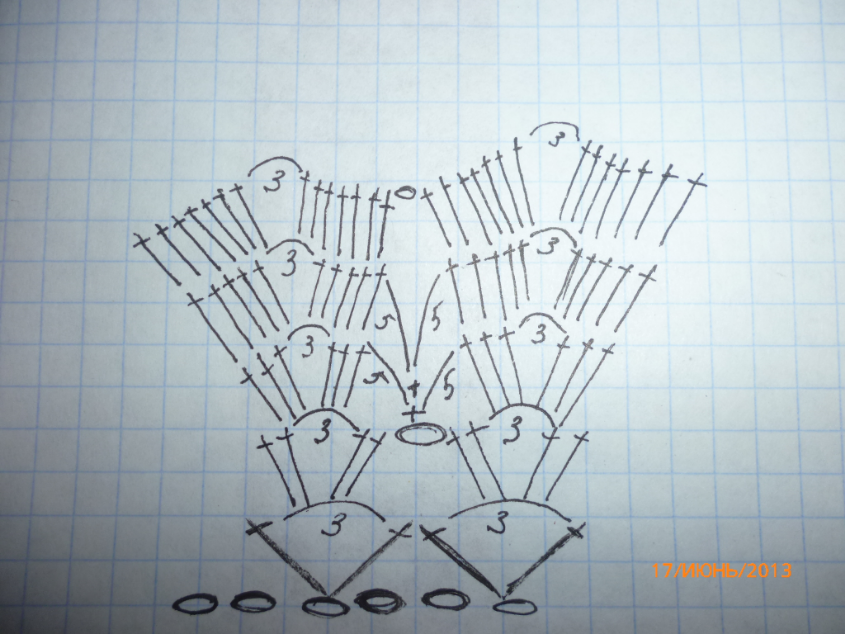 Девочки забыла написать, на схеме 5 рядов. Повторяем 1 раз с 1 по 5, затем повторяем 3-5 ряды до нужной длины.