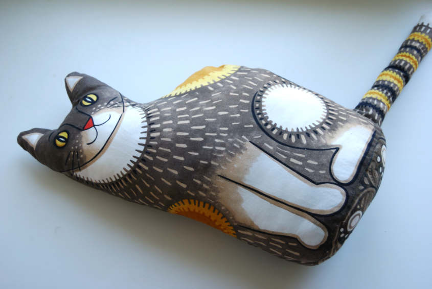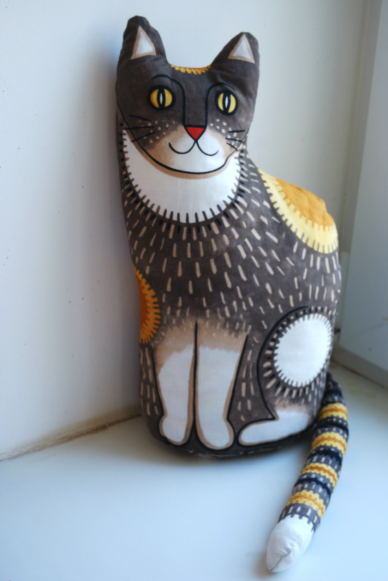 Игрушечный мир - животныеХочу показать любимую детьми подушку - кошку Мушку. Ткань была куплена на Фэбрикшэк еще весной, до того, как они прекратили поставки в РФ. Теперь так грустно заходить на их сайт, там столько красоты и все недоступно. В последнее время мне очень нравились у них ткани с готовым принтом для пошива игрушек, рождественских носков, фартуков и так далее. Не удержалась и купила Кошку Мушку. Вот, что получилось: