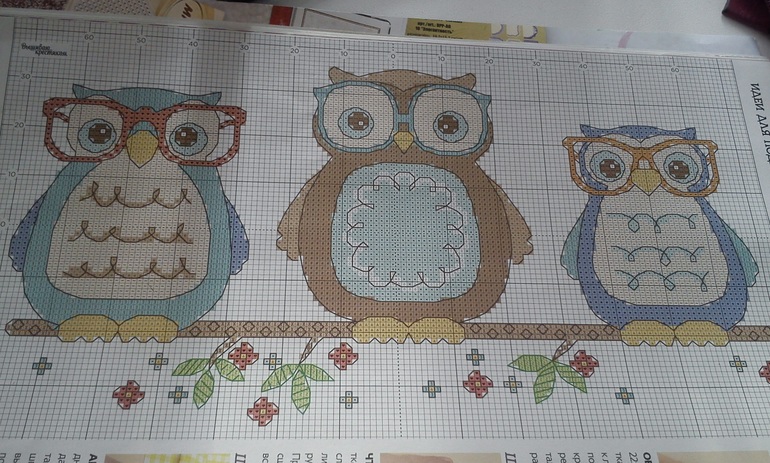 Привет. Сову вышивала по журналу" Вышиваю крестиком". Жираф вышивала на канве из набора. Но канва там конечно просто ужасная, лучше её поменять Для меня она очень рыхлая, я люблю вышивать на жёсткой канве.