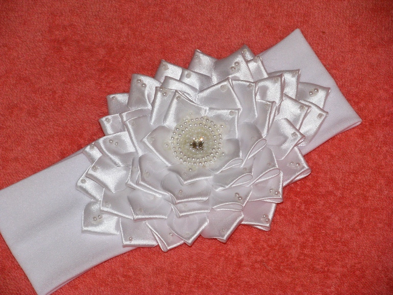 а как она у вас прикреплена к повязке? можно прикрепить на стрейч кружево