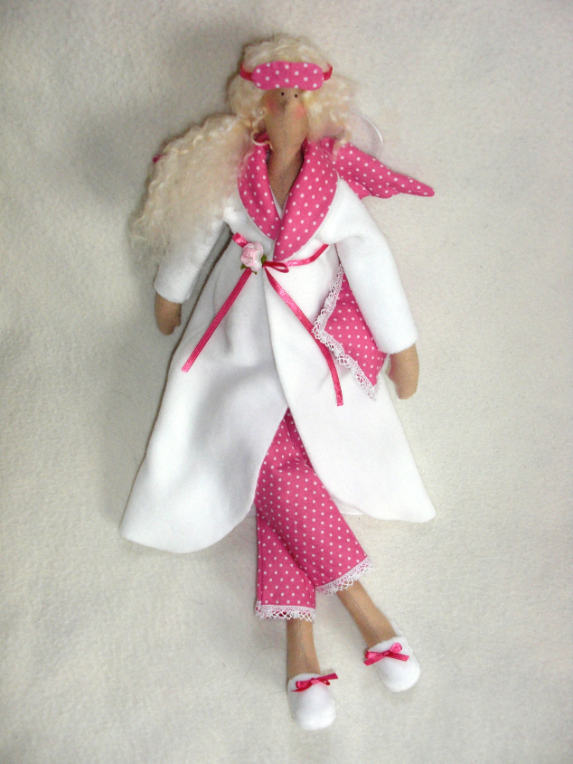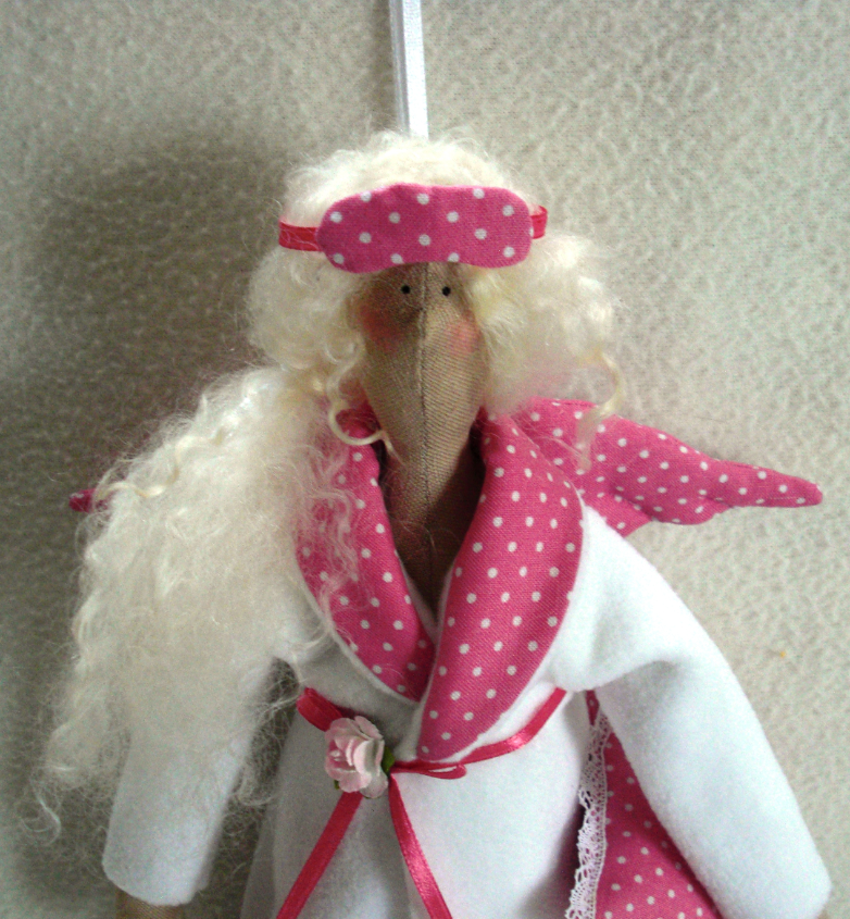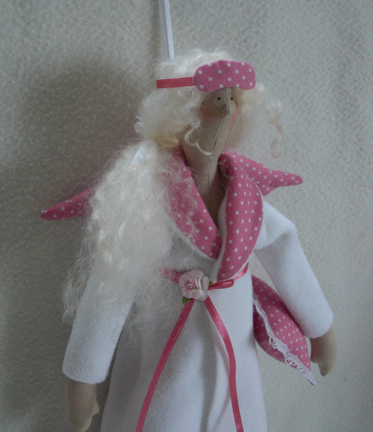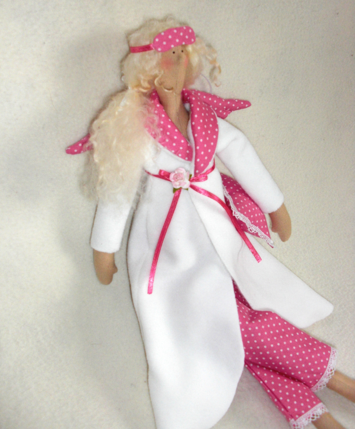 Очень красивая и нежная куколка,все рассматриваю тапульки, повязку на глаза-прекрасная работа!!!!