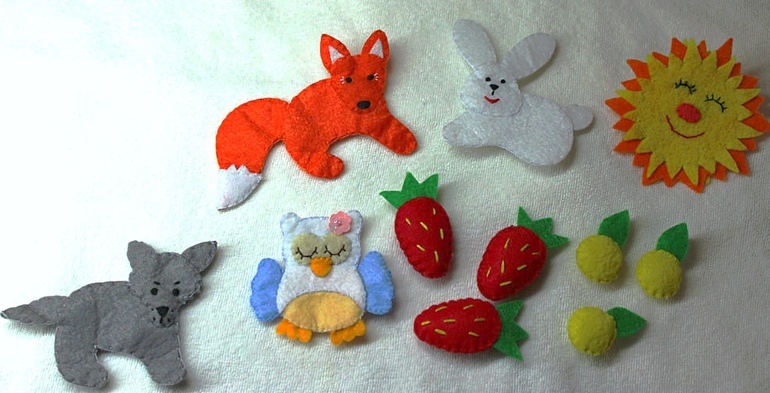 Клубничка на липучках. Ее можно так же собрать в мешочек. За листиком прячется грибочек (аппликация).