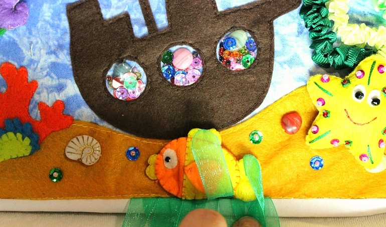 Кит плавает по ленточке. Морской конек на кнопке. Морская звезда на липучке.