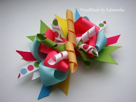 у вас очень красивые работы. Подскажите, а можно сделать по форме проще бант, платье итак довольно яркое. И есть ли у вас розовая лента с белым горохом (как пояс на платье)? может быть просто из такой широкой ленты сделать бант? Хочется на гловку просто чего-то миленького и праздничного :) Но чтобы не перебивать платье сильно :) И повязочку хочется простую, а не с дырочками (как на ваших работах), не знаю как правильно пояснить :) Думаю, вы меня поняли :) А еще мне ваши розочки на повязочке понравились (или на ленточке). У нас второе платье на ДР - белое, с темно синим пояском. Может быть вы нам заодно сделаете белую ленточку с двумя или тремя розочками? Одну розочку темно синюю, две белых (или по одной).