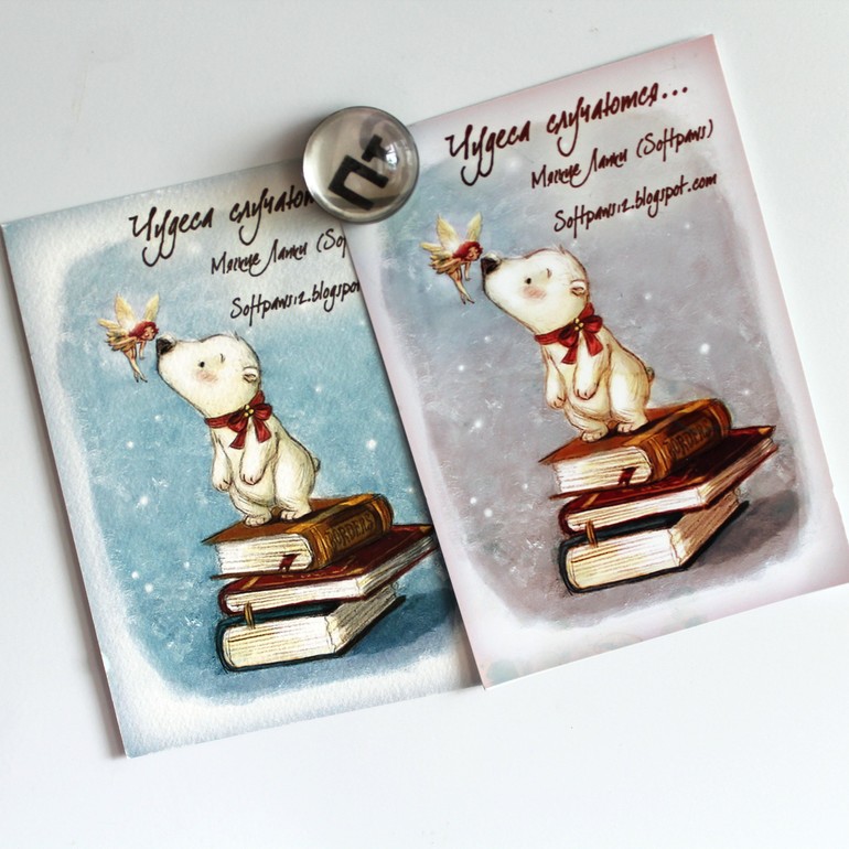 Открываем и видим милую открытку! Она как нарисованая! С очень трогательной надписью!