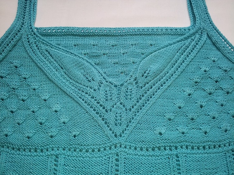 Связала себе любимой летний топ. Долгое время не решалась за него взяться, но потом все же решилась :) Не пожалела!!! Пряжа Alize Diva Stretch 400 м/ 100гр, спицы № 2,5 расход 2 мотка. Топ вязали на . Там взяла описание и схемы. Я вязала по кругу, разделила уже в районе проймы. Топ получился без швов (не считая маленьких на бретелях и нижних листочках)