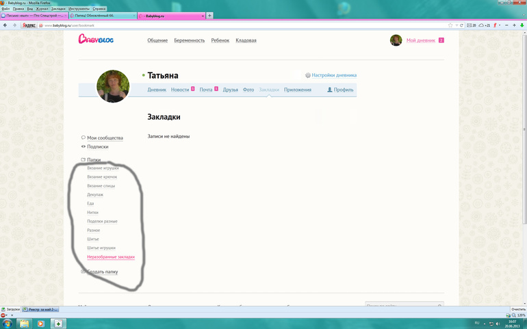 А закладки зайдите в дневник и выберите закладки. слева будут папки, если они у вас заведены