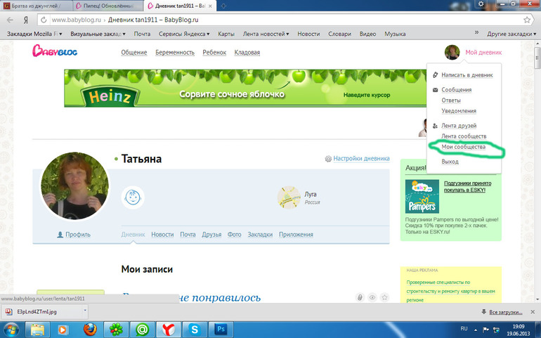 Это где ваши сообщества подойдите к "Мой дневник" всплывет окошко