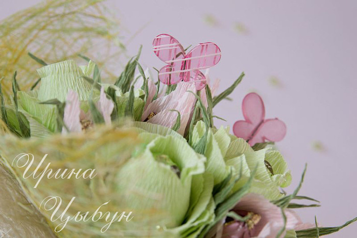 По тому же принцмпу делаем остальные розочки и составляем конфетный букет.