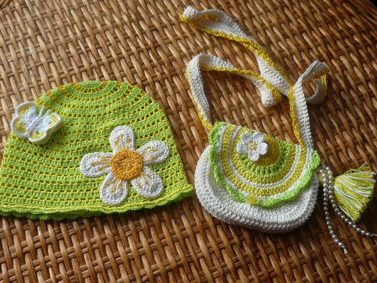 1. Комплект из сумочки и панамки. 500 руб. Панамка на обхват головы 48-50 см ( примерно на 2 года). Ручку у сумочки отрегулирую по вашим меркам.