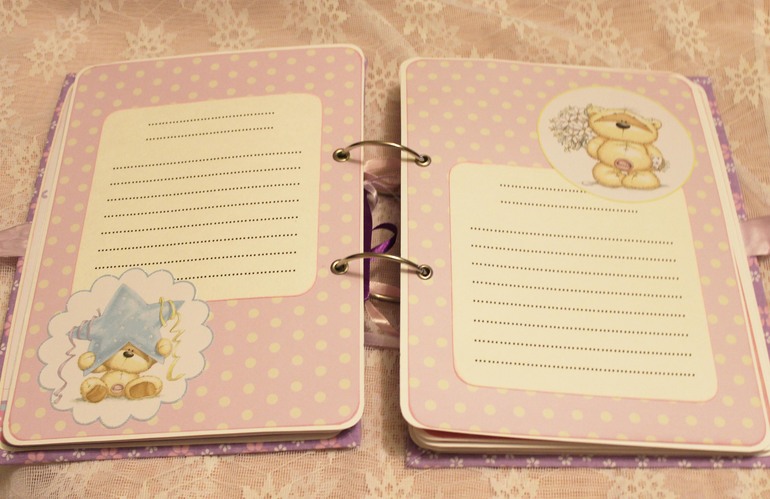 СкрапбукингХочу показать книгу пожеланий для малышки и папочку для хранения свидетельства о браке. еще делала (впервые) кулечки для лепестков роз, но не думаю что такое надо показывать. Хотя делать их было интересно.