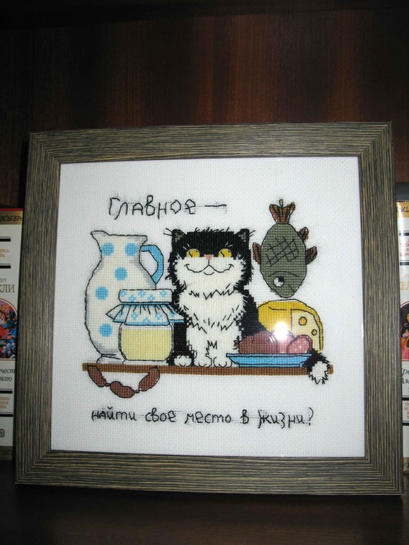 Известный котик от Риолис. В багетке так натянули, что восклицательный знак превратился в вопросительный. Ну чтож, пусть будет риторический вопрос)))