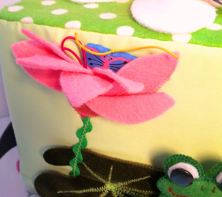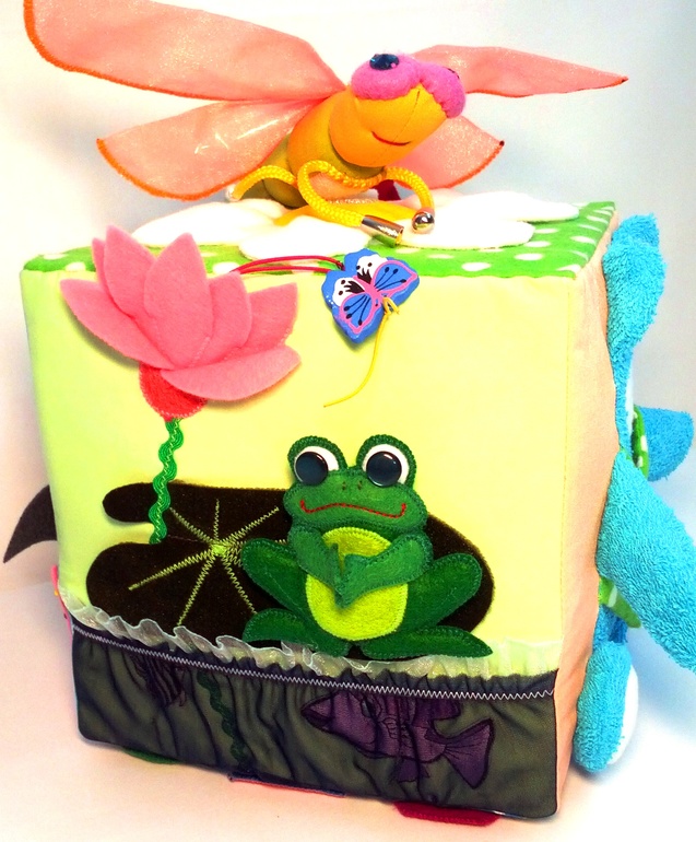 Лягушка-квакушка с пищалкой внутри, крепится на липучку к листу кувшинки.