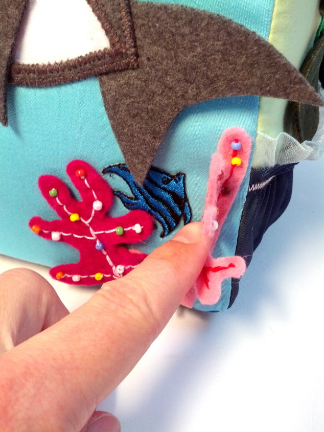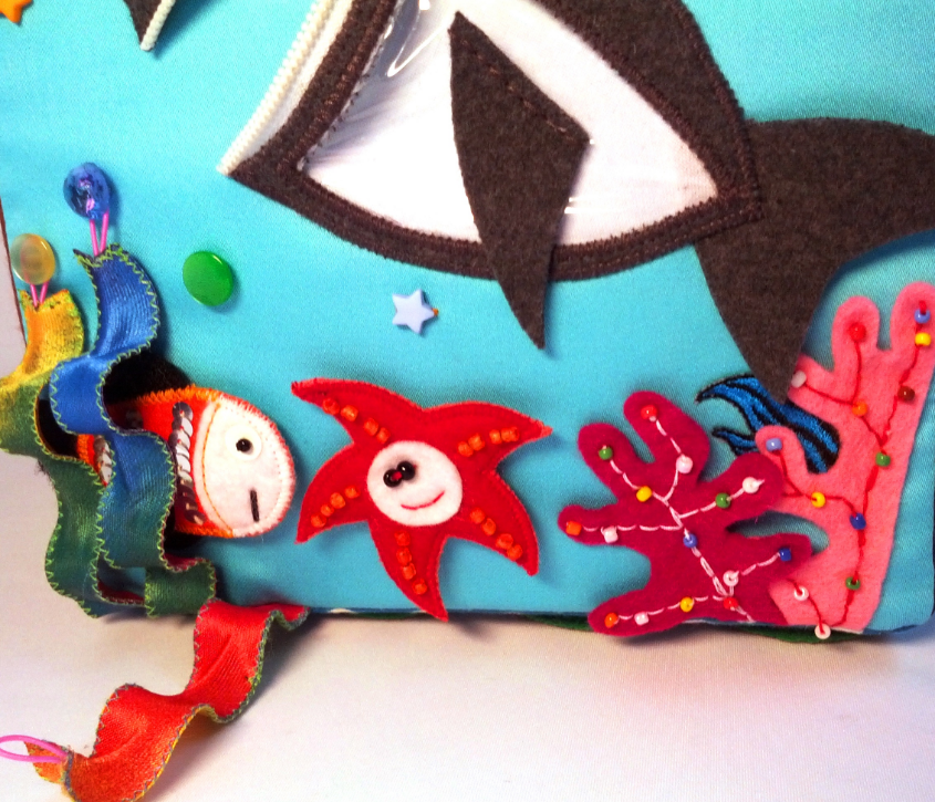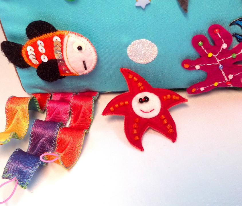 Рыбка шуршит, плавники у нее из мягкой стороны липучки. Морская звезда вышита бисером.
