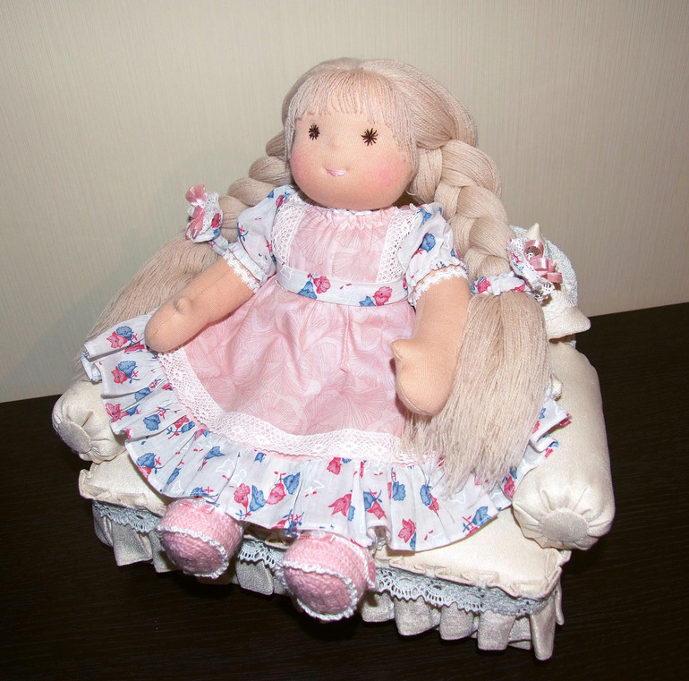 Это Розовое Облачко, рост 36 см., сделана полностью из эко-материалов, волосики вышиты. Диванчик-шкатулка, кукольная миниатюра,масштаб 1:6