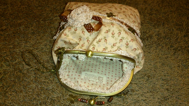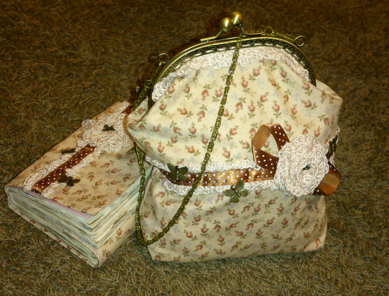 - Сумочка-косметичка. Замок Фермуар 15 см бронзового цвета, цепочка. Сумочка украшена аналогично блокнотику.