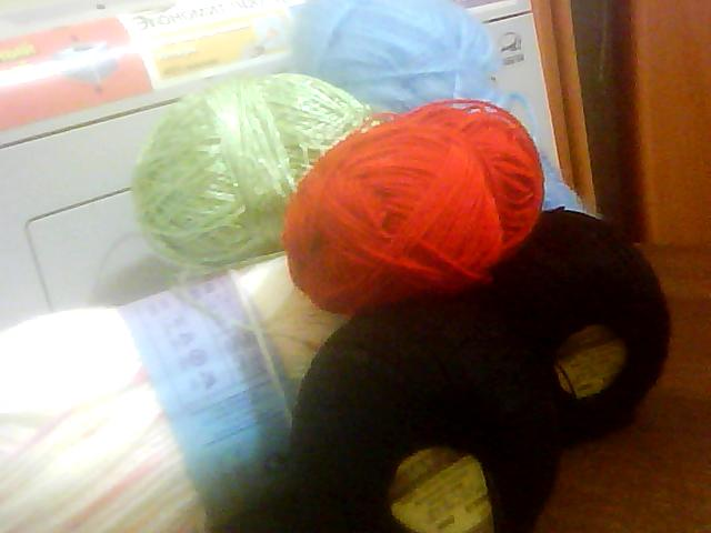 Описание: пряжа-ярн арт лили(чёрная),детская(белая)+в дополнение моточки зелёной,красной и синей.