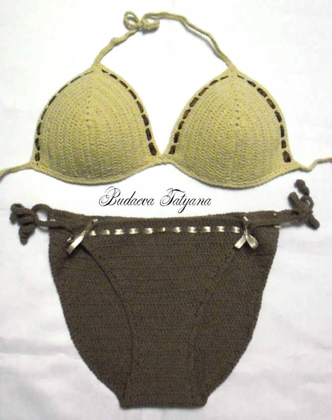 Спасибо!Весь купальник связан столбиком с накидом. А вот выкройки нет,по этому вязала и несколько раз перевязывала от трусиков