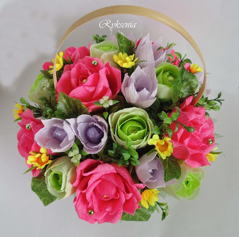 Спасибо! Цветы делаются только с конфетами, направление называется свит-дизайн. Научиться, конечно, можно, главное желание. Можно поискать на осинке, там масса МК или набрать в любом поисковике- тоже найдется много информации.
