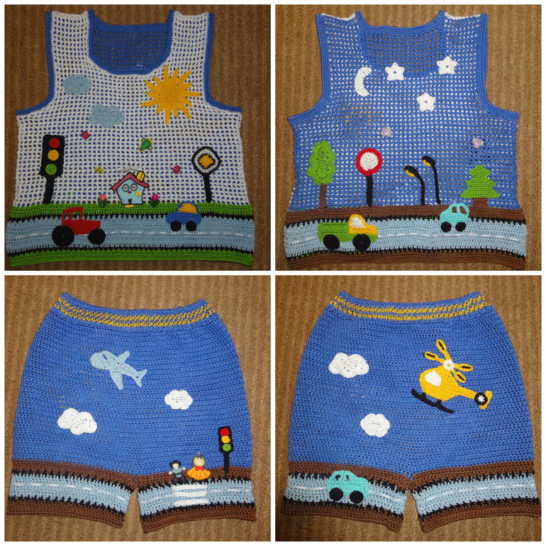 После прогулочки решила пришить вертолетик на шорты и доделать обвязку маечки)))