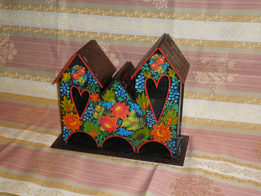 Спасибки, Наташ ....А как ты думаешь если по всему домику, после законченности рисунка ..... сделать двушаговый кракелюр и затереть золотом? Или не стоит????
