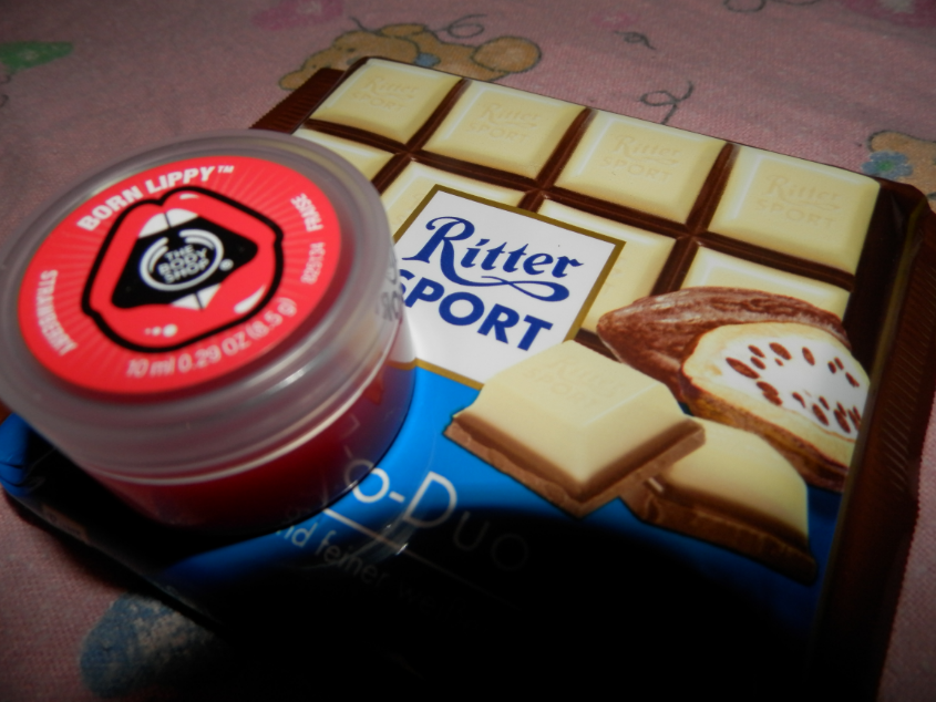 И напоследок сладость для нашего папы (он был "оченно" приятно удивлён)))) и просто умопомрачительно пахнущий бальзамчик для губ (доча его сегодня несколько раз просила понюхать)