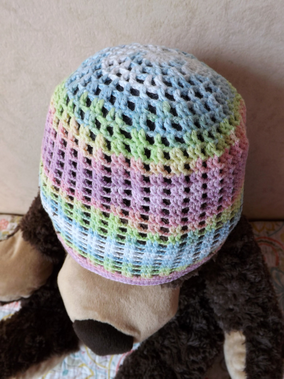 Связала Кире шапочку на раннюю осень. Пряжа - испанский 100% хлопок. Порадовали меня эти ниточки и цветом, и качеством. Приятно было держать в руках вязание )))