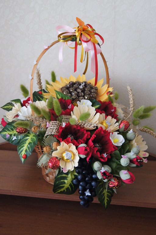Да, впечатляющая корзина получилась! С размахом! Лена, молодец, все красиво, маки очень понравились.
