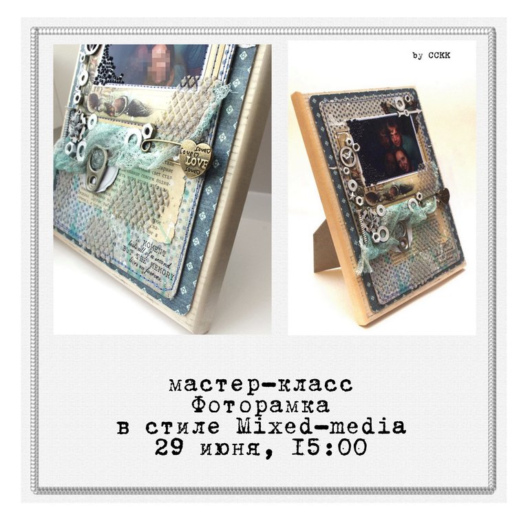 В эту субботу, 29 июня пройдёт мастер-класс по созданию фоторамки в стиле миксед-медиа.