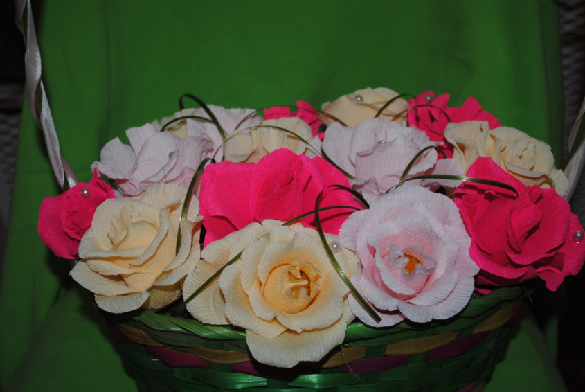 Корзинка не плохая, розы красивые. (но не хватает высоты и объема в работе. )
