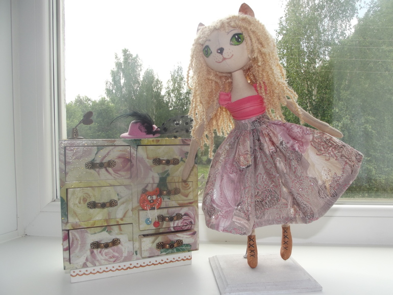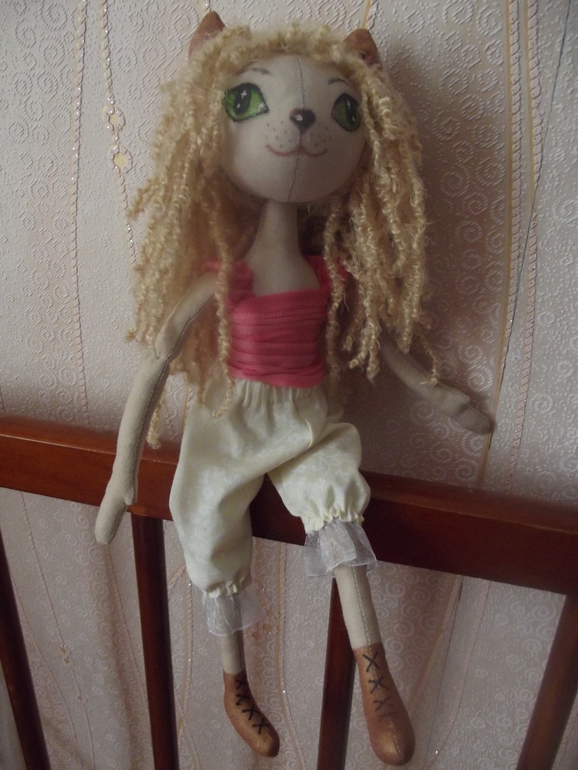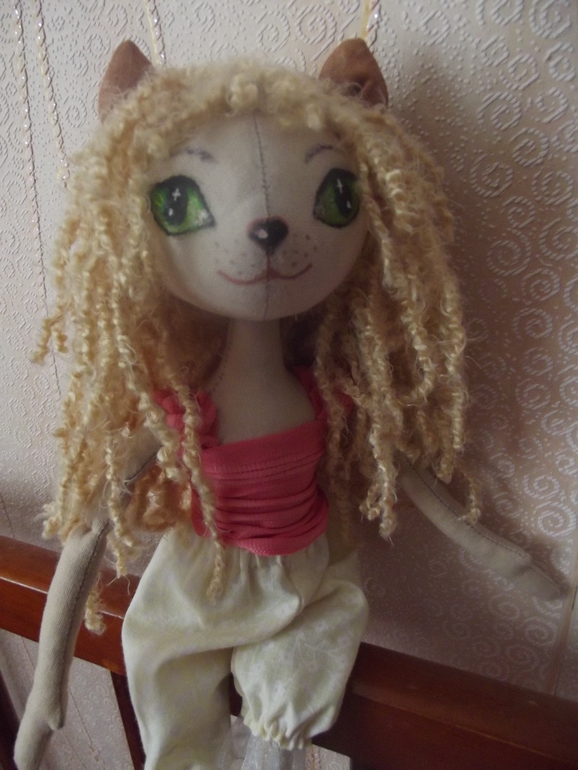 Вобщем, как вы поняли, у меня получилась кукла-кошечка! Точнее, мне бы очень хотелось, чтобы она была похожа на кошечку! Так как мои домашние пришли совсем к другому....