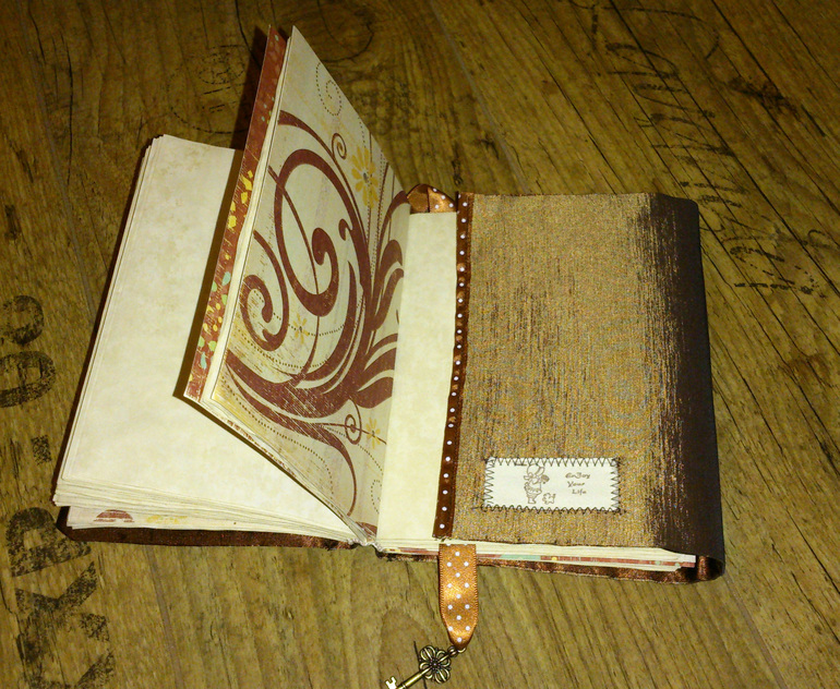 Блокнот свободно помещается в сумочке и еще достаточно места для всяких мелких безделушек.