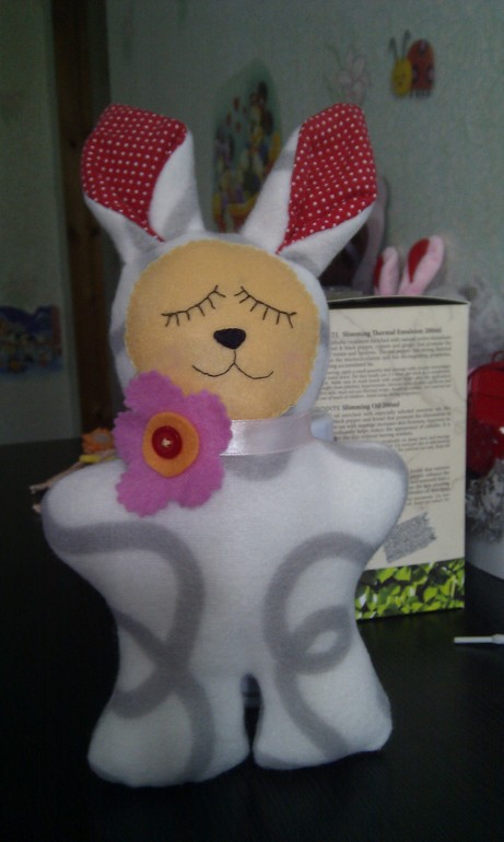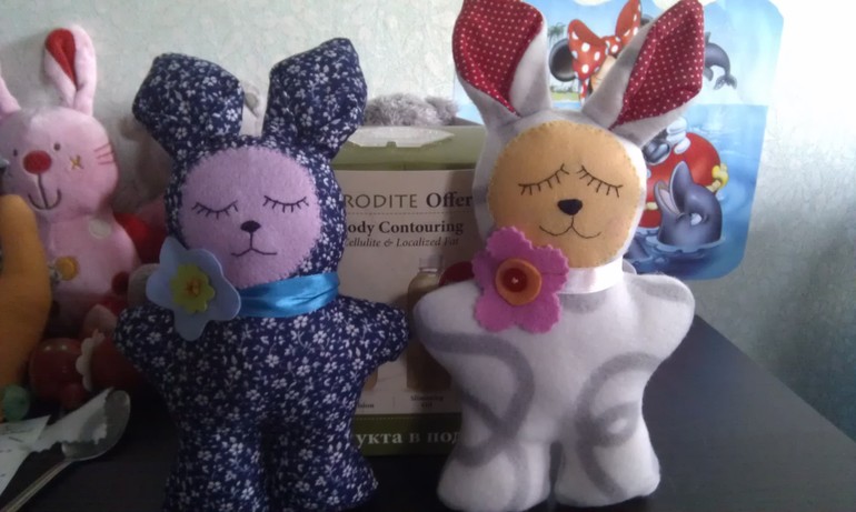 Т.к. подарки мы раздарили раньше,чем попали к этим малышам в гости, а с пустыми руками не пойдешь, то сшились вот такие зайки,без особых украшательств, для совсем маленьких мальчика и девочки. Зайцев уже вручила,очень обрадовались мамы, а дети обновили зайцам уши