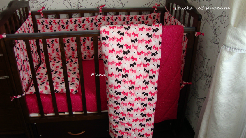 А можно узнать подробности, как заказать, где ткань выбирать и сколько примерно будут стоит три борта на кроватку и покрывальце?