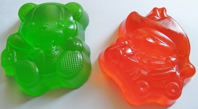 Еще из желейной основы. Пират с отдушкой Дыня, мишка - Виноград. Дыня прям среднеазиатской дыней пахнет (по просьбе одной из заказчиц делала даже ароматизатор с этим запахом для шифоньера).