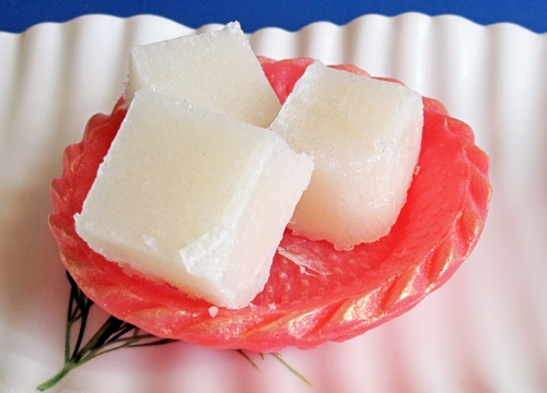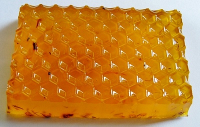 Медовое тоже из желейки. С отдушкой Мед, сухоцветом календулы и облепиховым маслом.