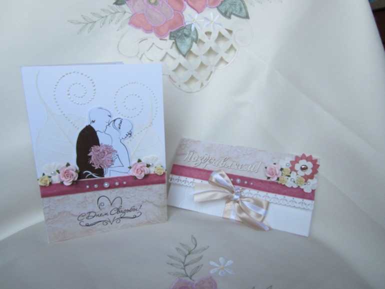 СкрапбукингСделала на свадьбу двоюродного брата открытку и конверт для денег.