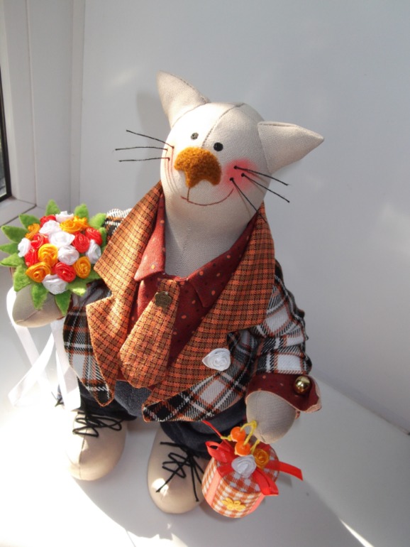 обычно я абсолютно равнодушна к игрушкам и поделкам, а тут просто не смогла пройти мимо! Обалденный кот! Просто любовь с первого взгляда))) действительно произведение искусства)))