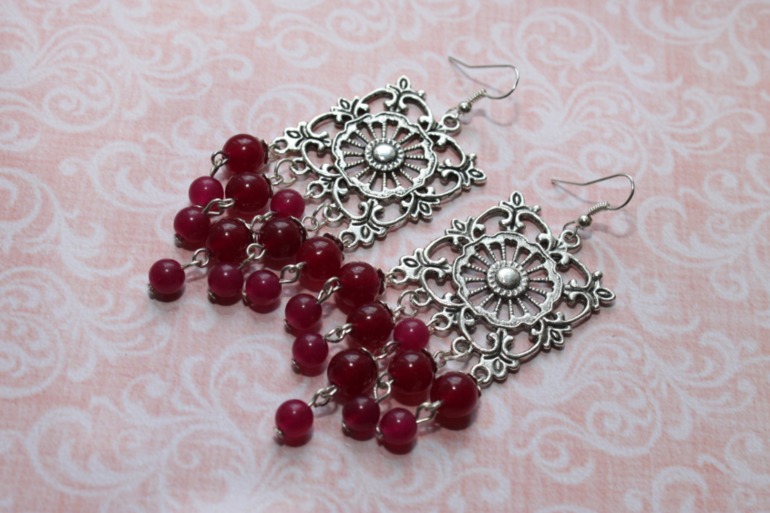 2. Серьги с жадеитом "Клюквенный морс" Фурнитура под серебро,жадеиты
