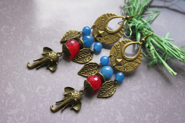 4. Серьги "Африканские мотивы" Фурнитура под бронзу, агаты, топазы