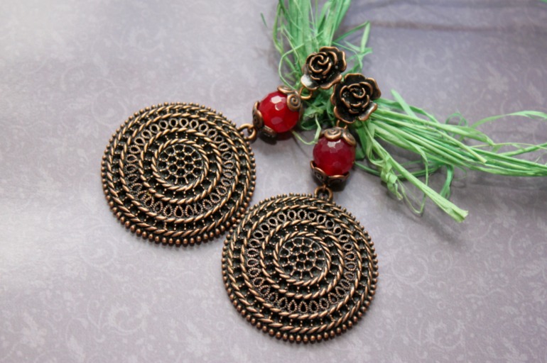 3. Серьги с агатами "Круги на воде" Фурнитура под медь, агаты