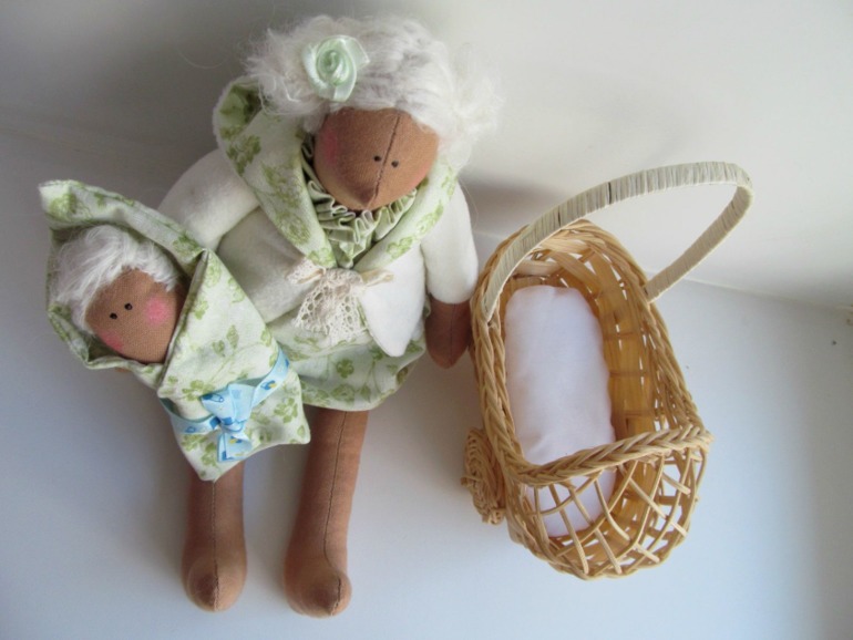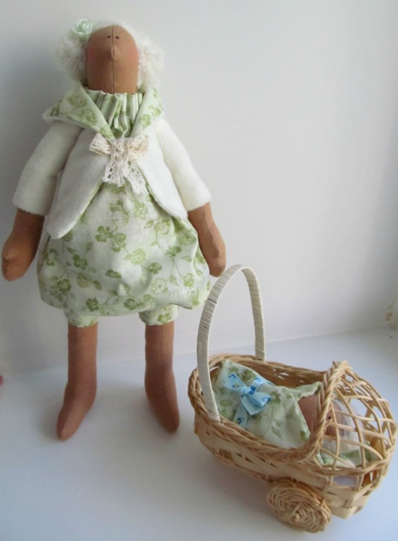 Вот такая куколка почти дважды мамочка сшита в подарок одной приятельнице. Она любит зеленый цвет и очень хочет детишек, блондиночка. Вот все это и сложилось в такой образ. нежный-нежный. в субботу вручу ей подарочек этот с бонусами сладкими )