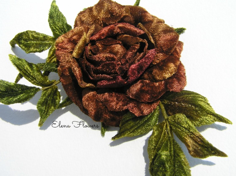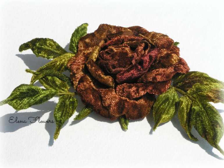 Девушки,пришла я к вам с мягонькой розочкой.Она из бархата,милая пушистая )))))))необычно видеть из бархата,но эффектно